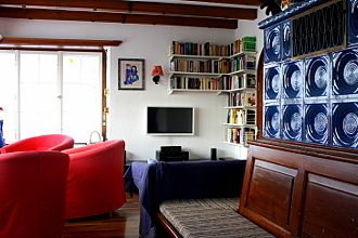 Wohnzimmer mit taditionellem handgefertigtem Kacheloffen